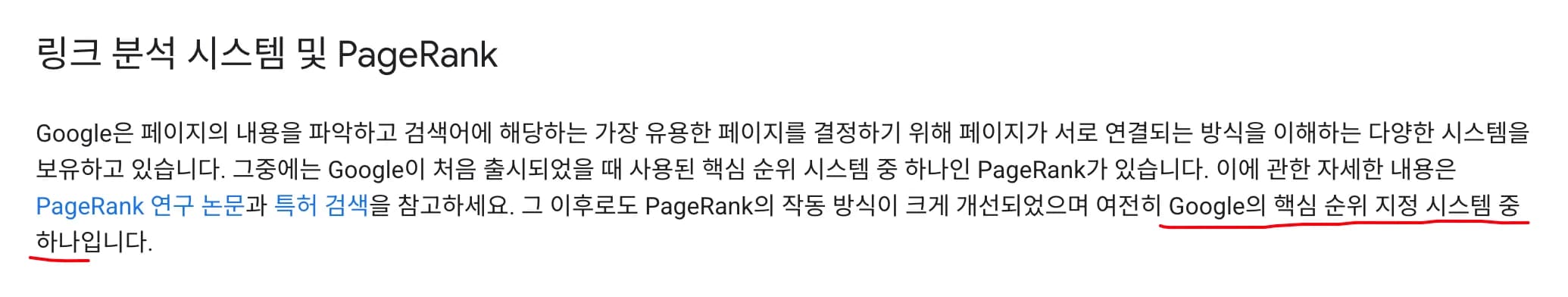 링크가 과거보다는 엄청난 순위 결정 요소는 아니라는 언급이 보이긴 하지만 여전히 공식문서에서 언급되어 있는바