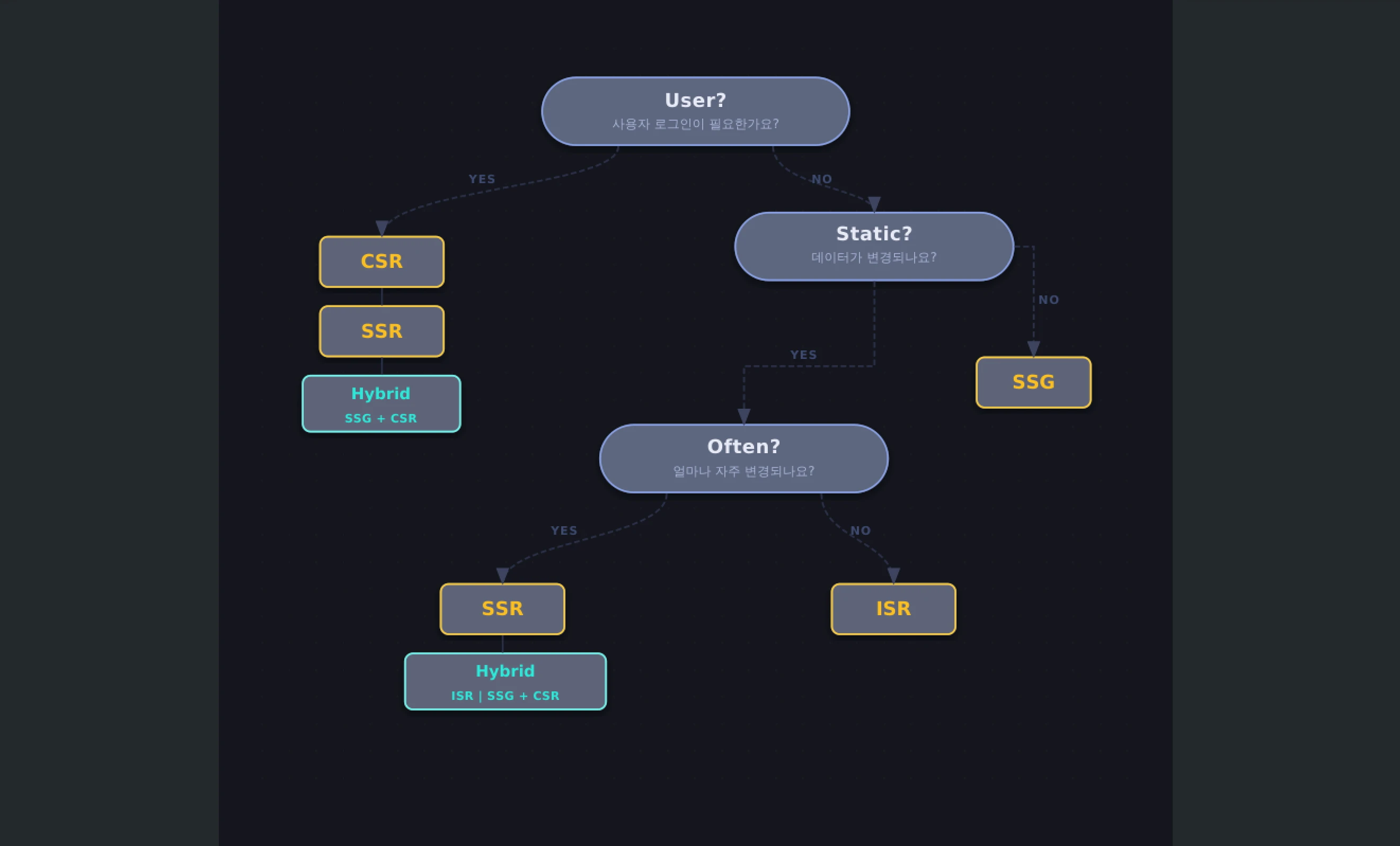 저는 보통 아래의 기준으로 페이지의 렌더링 방식을 결정합니다.