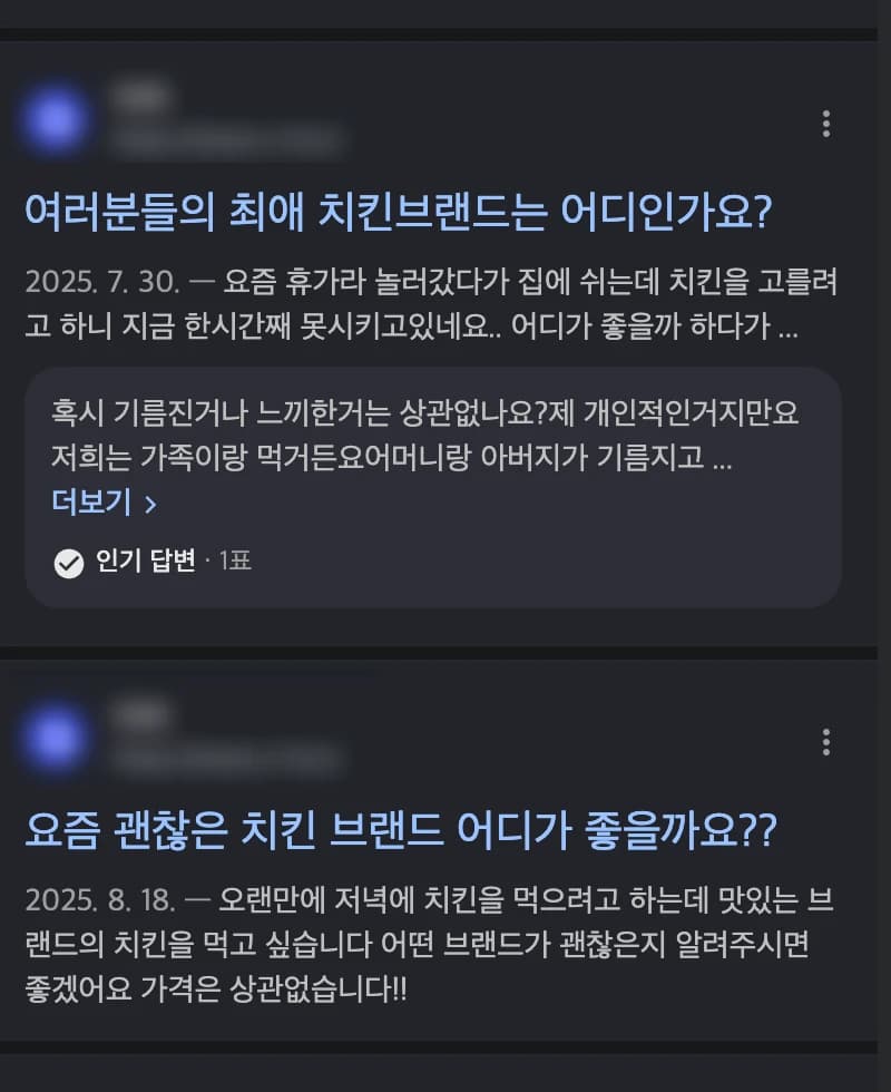 이렇게 답변을 부각한다던가 일반 검색결과와 다른 느낌을 제공합니다.